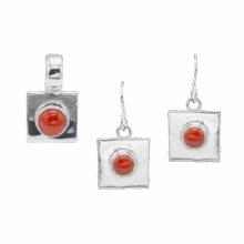 Inlay Jet, Coral & Opal Earrings/Pendant Set GZ NW 4212