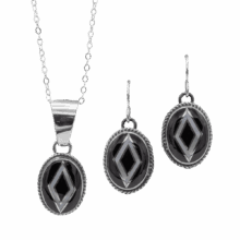 Inlay Jet and Mother of Pearl Pendant and Earring Set GZ NW 6037