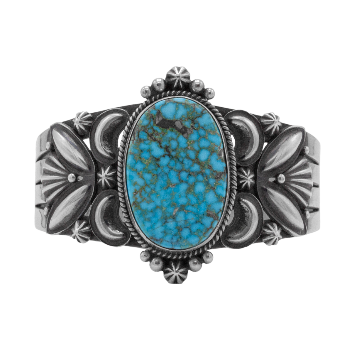 1 Stone Turquoise Cuff Bracelet; 1-1/4″ at widest part.
