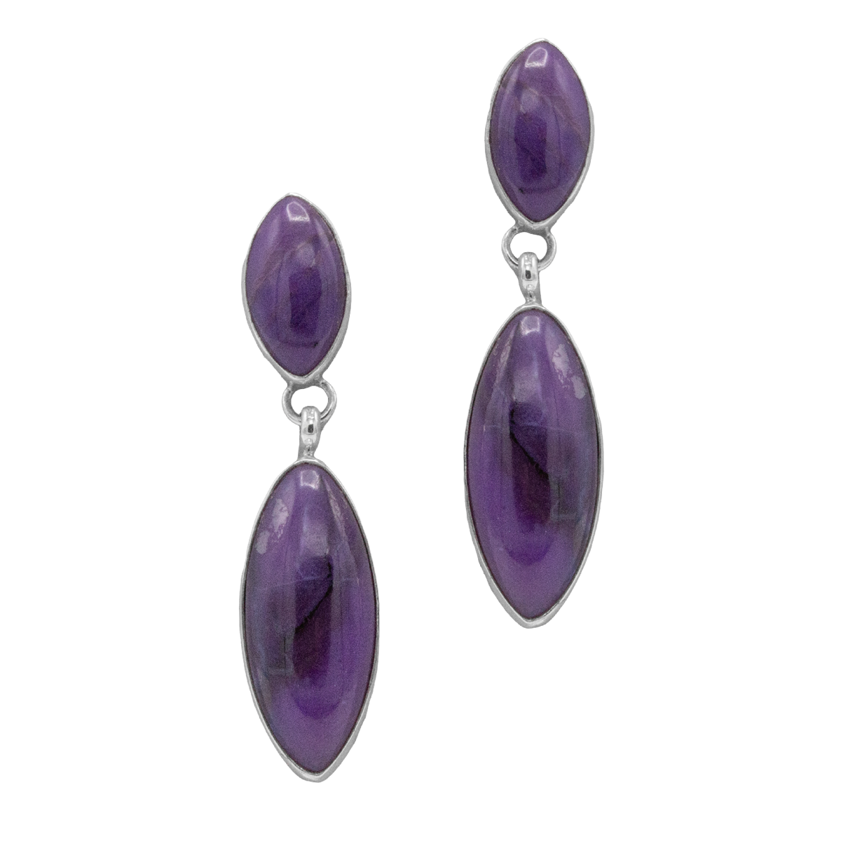 2 Stone Sugilite Earrings; 1-1/2″ long.