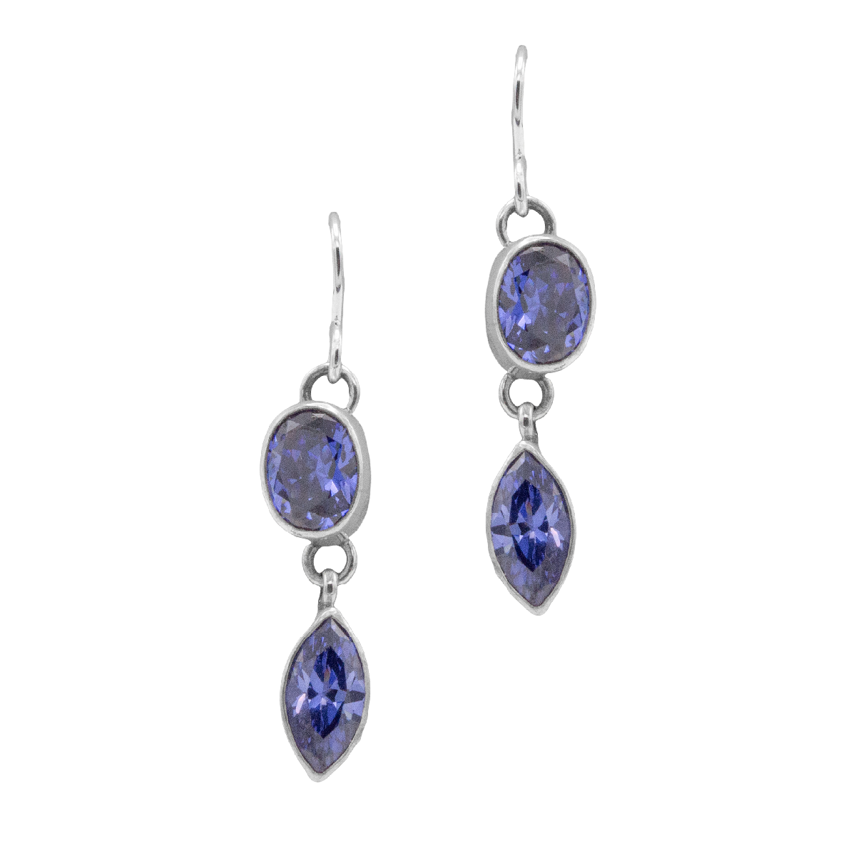 2 Stone Tanzanite Earrings; 1-1/2″ long.