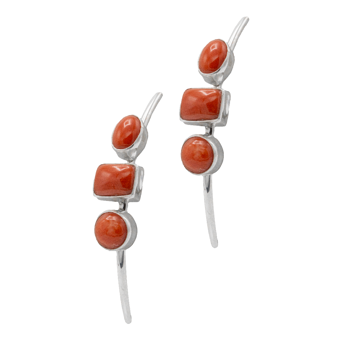 3 Stone Coral Earrings; 2″ long.