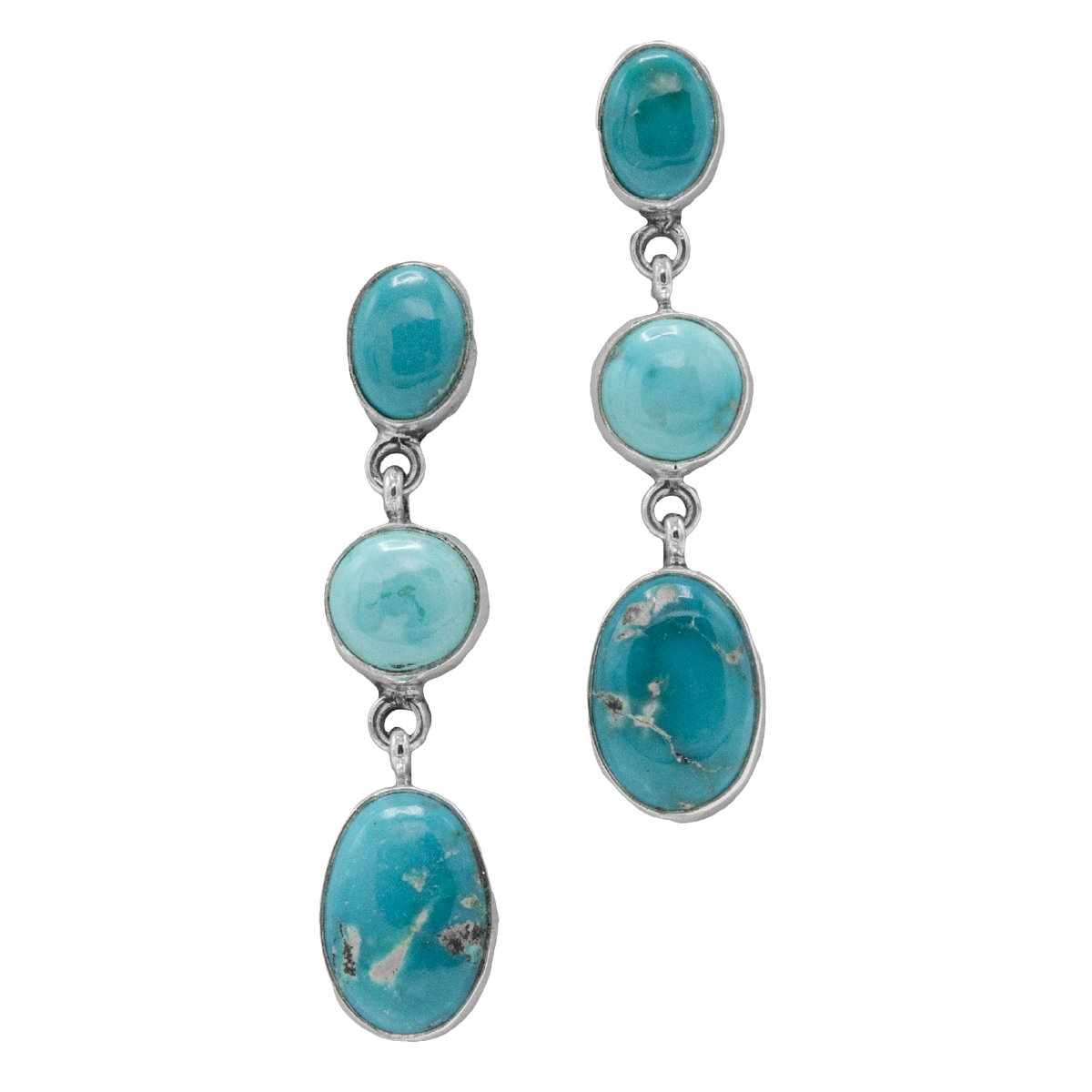 3 Stone Fox Turquoise Earrings; 1-1/2″ long.