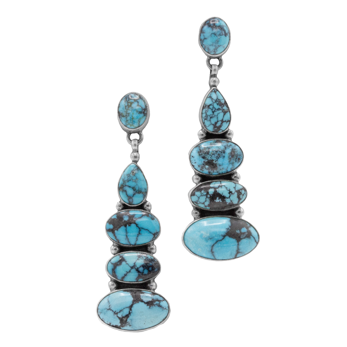 5 Stone Chinese Turquoise Earrings; 2″ long.
