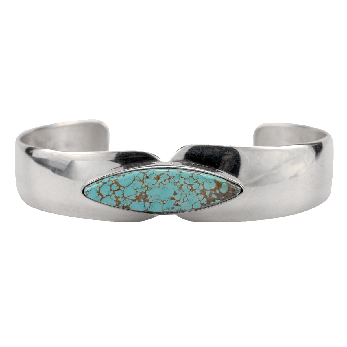 Single Stone #8 Turquoise Cuff Bracelet. 1/2″ at widest point.