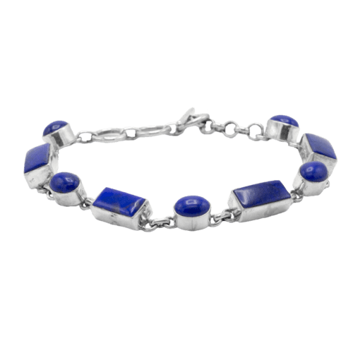 9 Stone Lapis Link Bracelet; total length 8-1/2″