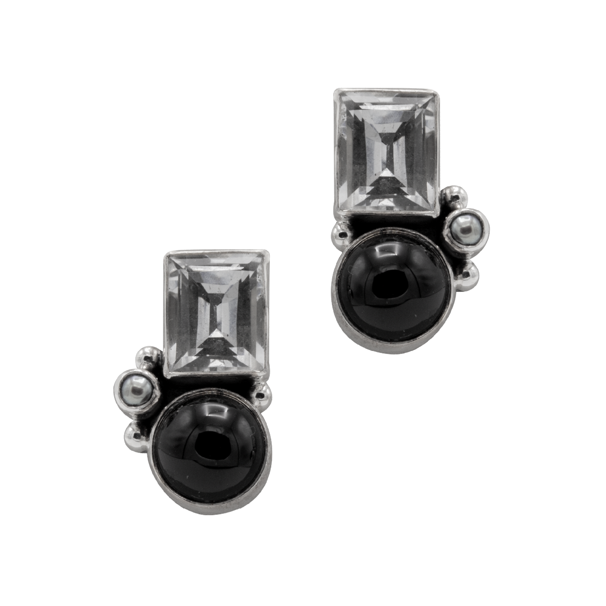 Onyx and White CZ Earring. 3/4″ long.