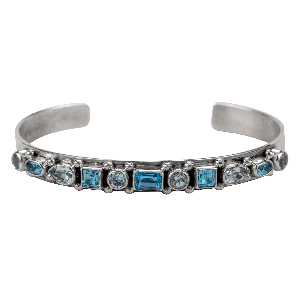 11 Stone Blue Topaz Cuff Bracelet. 1/4″ wide.