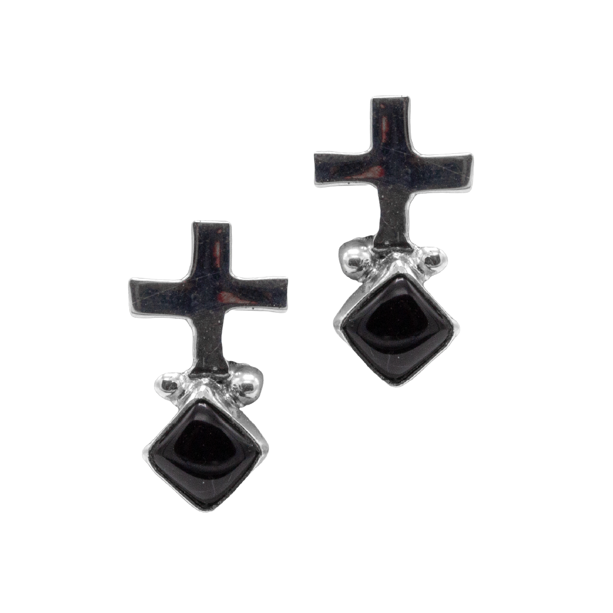 Cross Earrings with Onyx Stone; 3/4″ long.