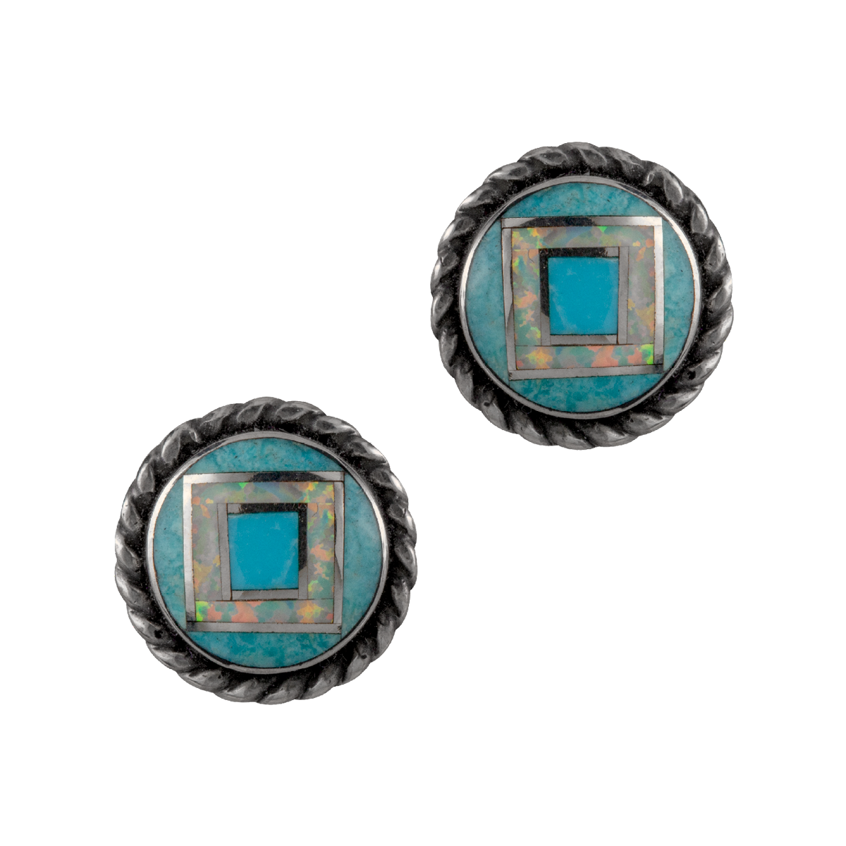 Dry Creek Turquoise and Opal Inlay Earring. 1/2″ across.