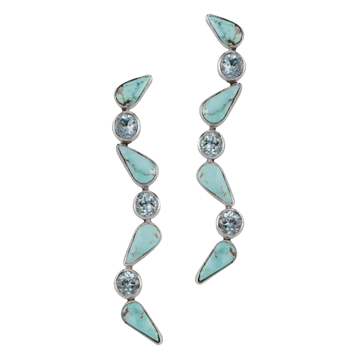 Dry Creek Turquoise and Blue Topaz Earring. 2″ long.