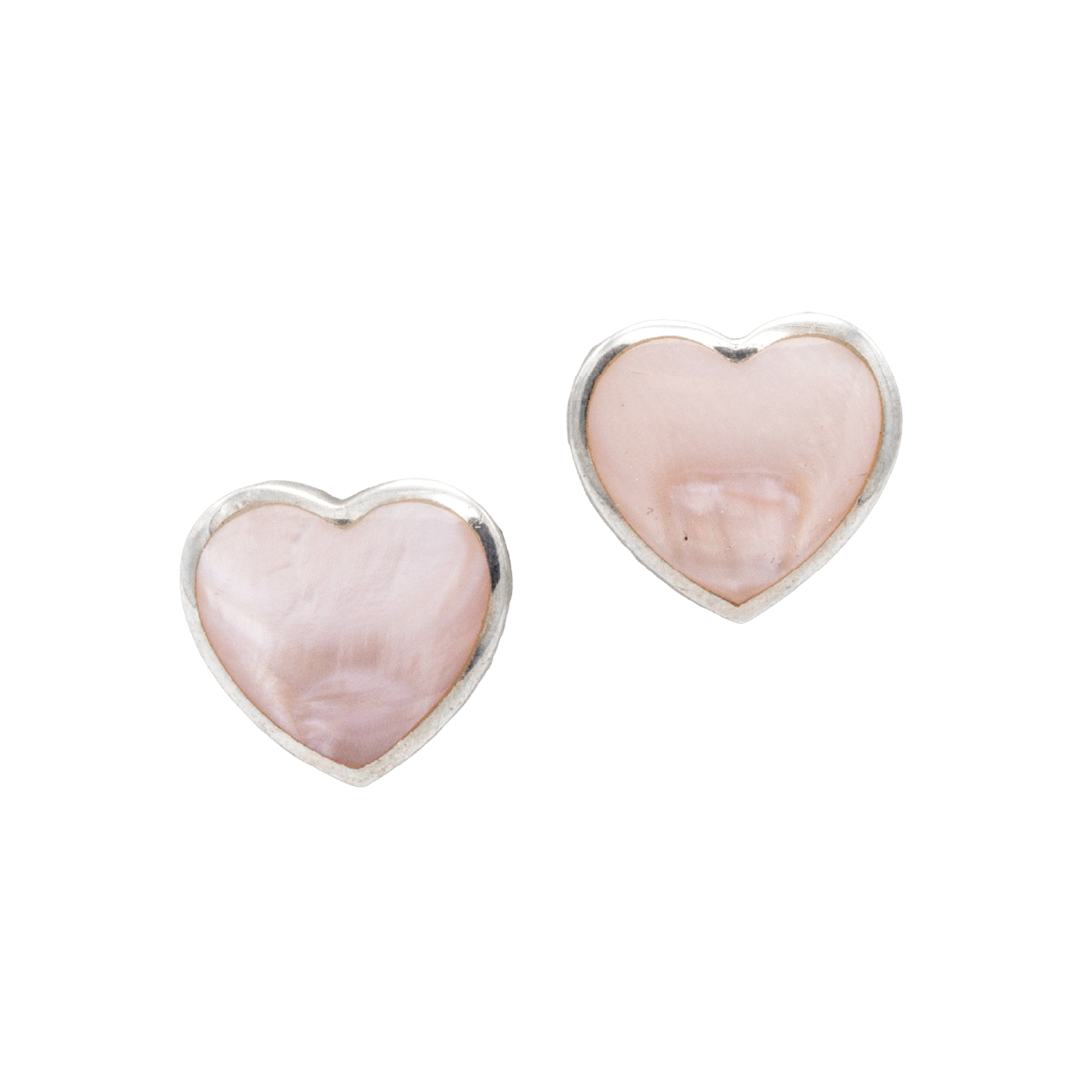 Heart Earrings with Pink Mussel Shell; 1/2″ long.