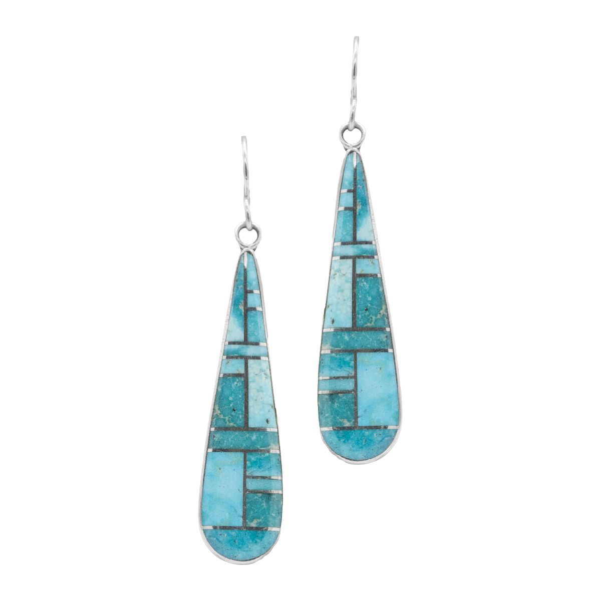 Inlay #8 Turquoise Earrings; 2-1/4″ long.