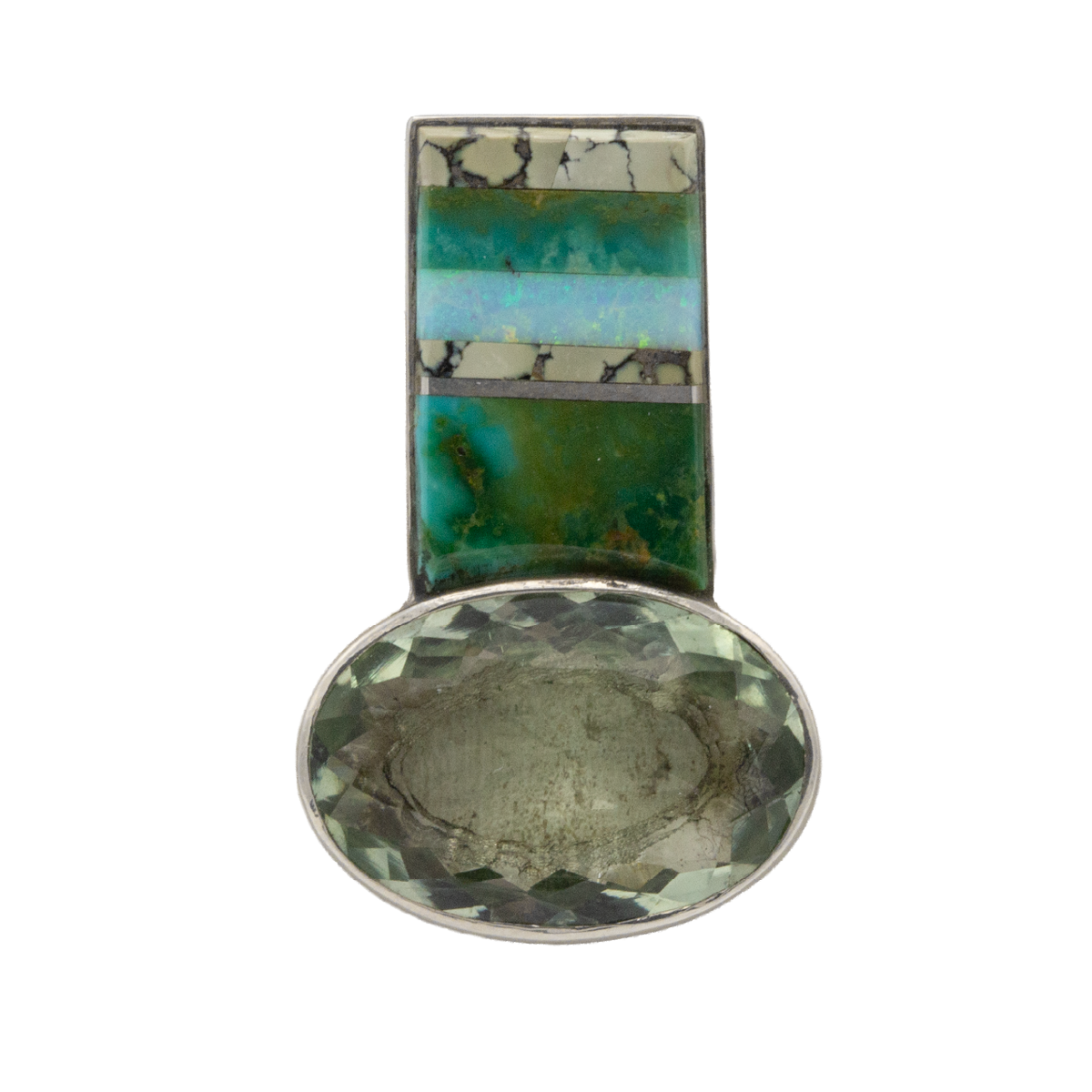 Inlay Green Amethyst. Damele Turquoise and Opal Pendant;