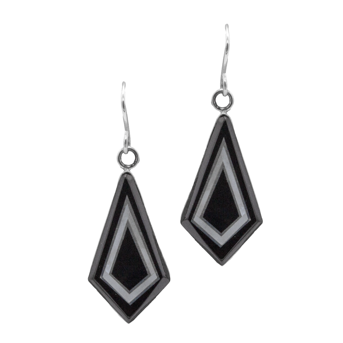 Inlay Jet and Mother of Pearl Earrings; 1-1/2″ long.