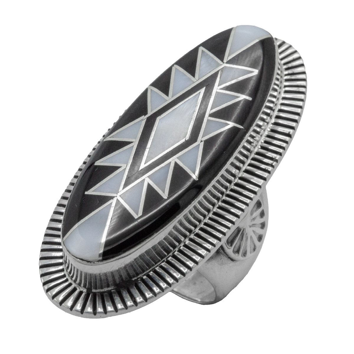 Inlay Jet and Mother of Pearl Ring; size 8, slightly adjustable.