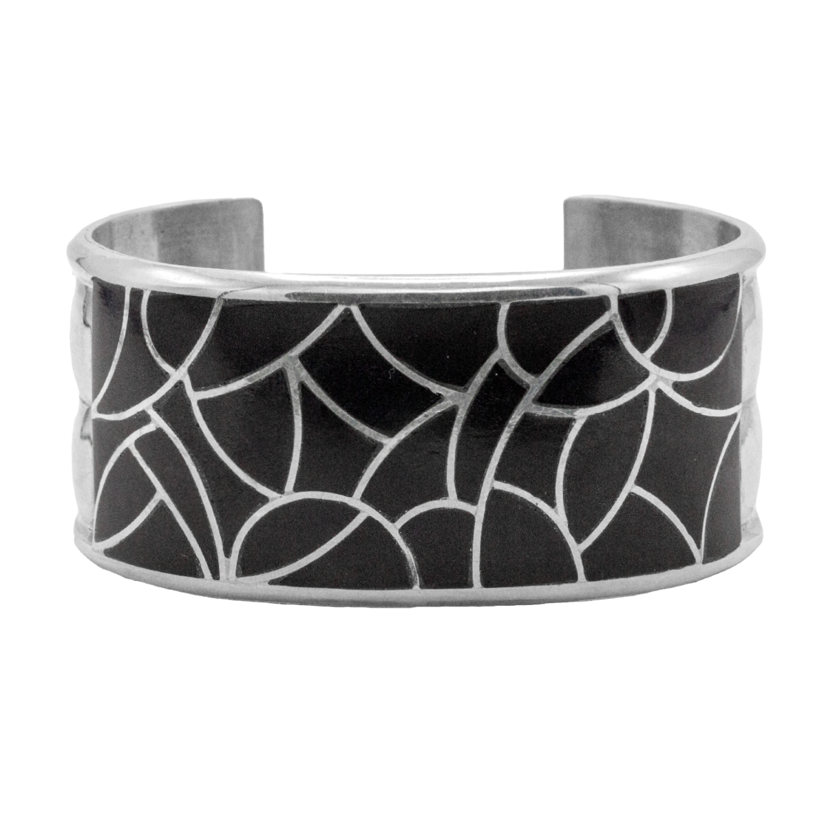 Inlay Jet Cuff Bracelet; 1-1/8″ wide.