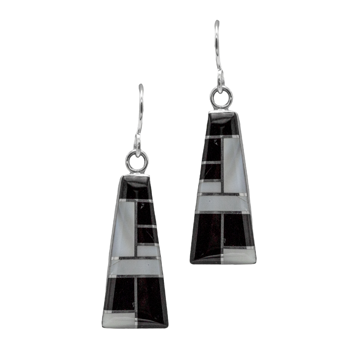 Inlay Jet & Mother of Pearl Earrings; total length 1-3/4″