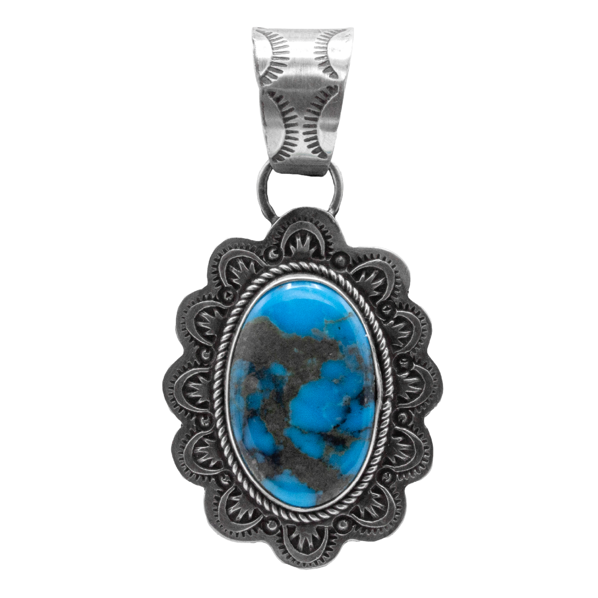 Stabilized Kingman Turquoise Pendant; 2″ long.