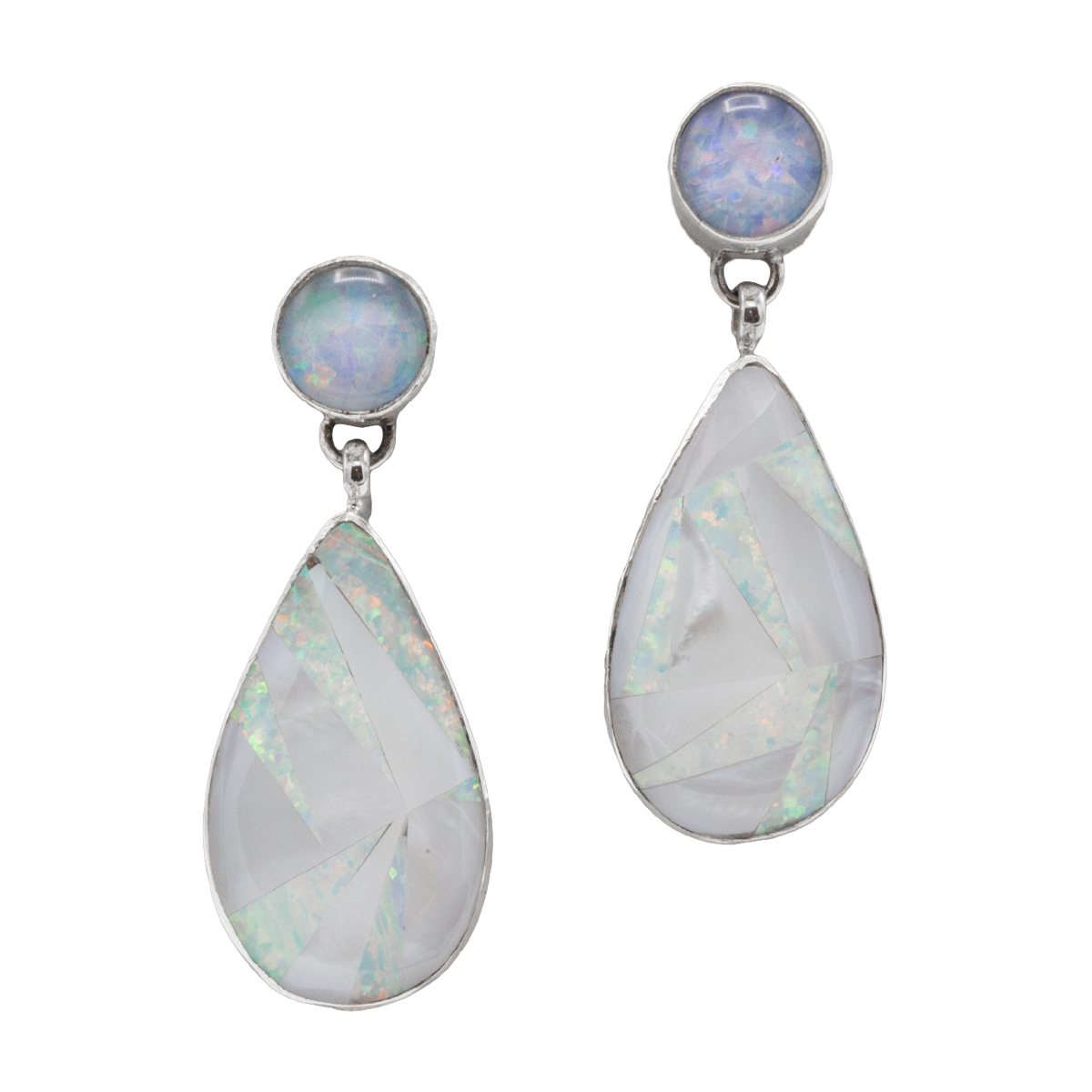 Inlay Opal and Mother of Pearl Earrings; 1-1/2″ long.