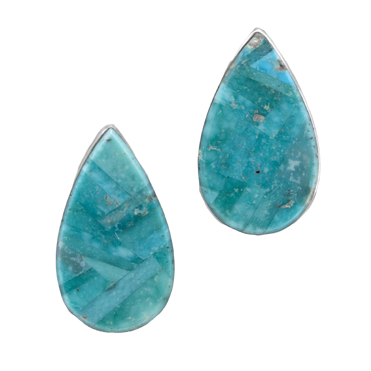 Inlay Enhanced Sleeping Beauty Turquoise Earrings; 1″ long.