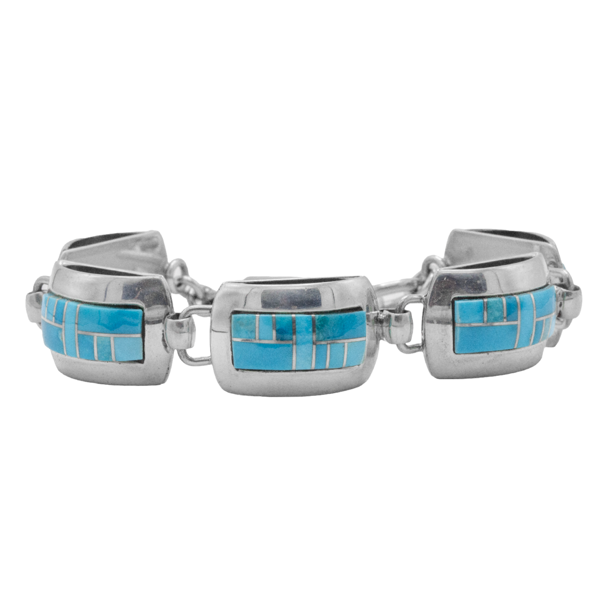 Inlay Sleeping Beauty Turquoise Link Bracelet; 7 1/2″ long.