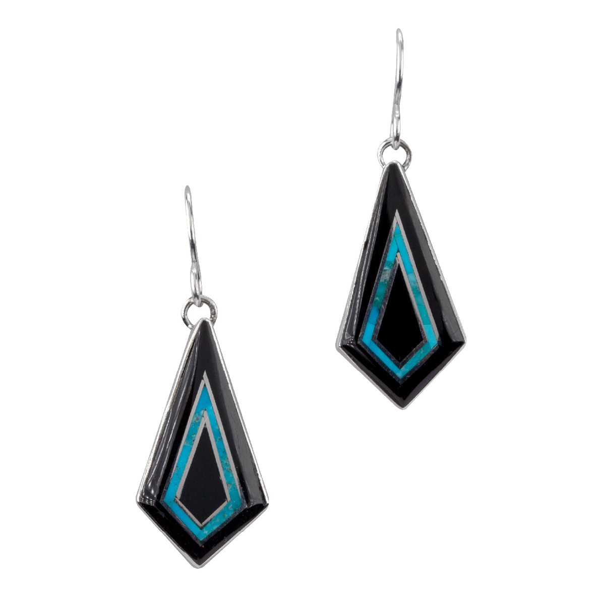 Jet and Sleeping Beauty Turquoise Earrings. 1″ from point to point.