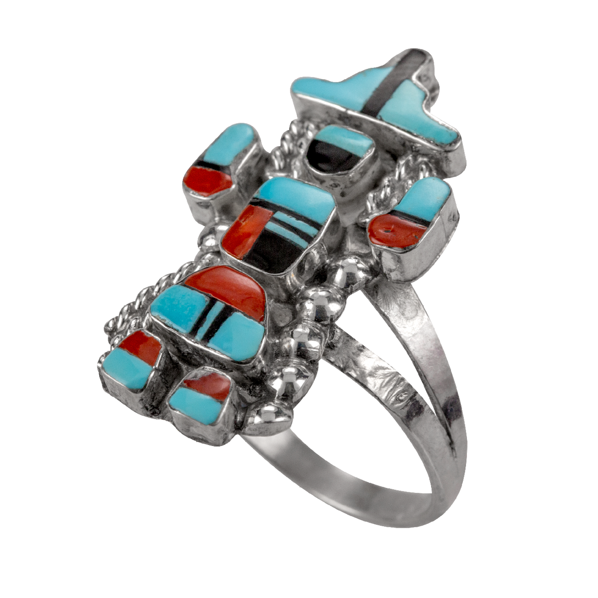 Inlay Kachina Ring. Size 7. 1″ long.