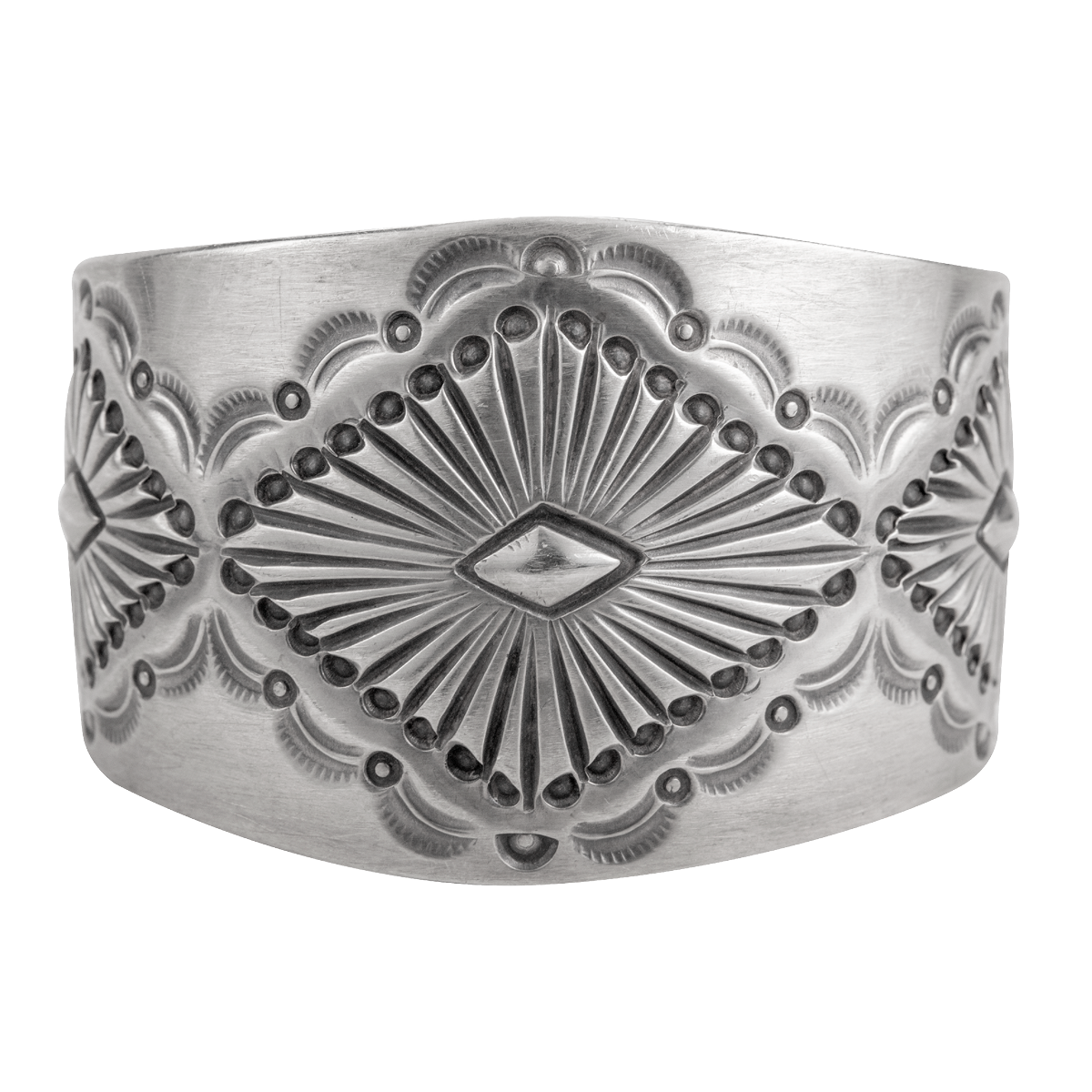 Kenny Bracken Silver Stamped Cuff Bracelet. 1-3/4″ at widest point.