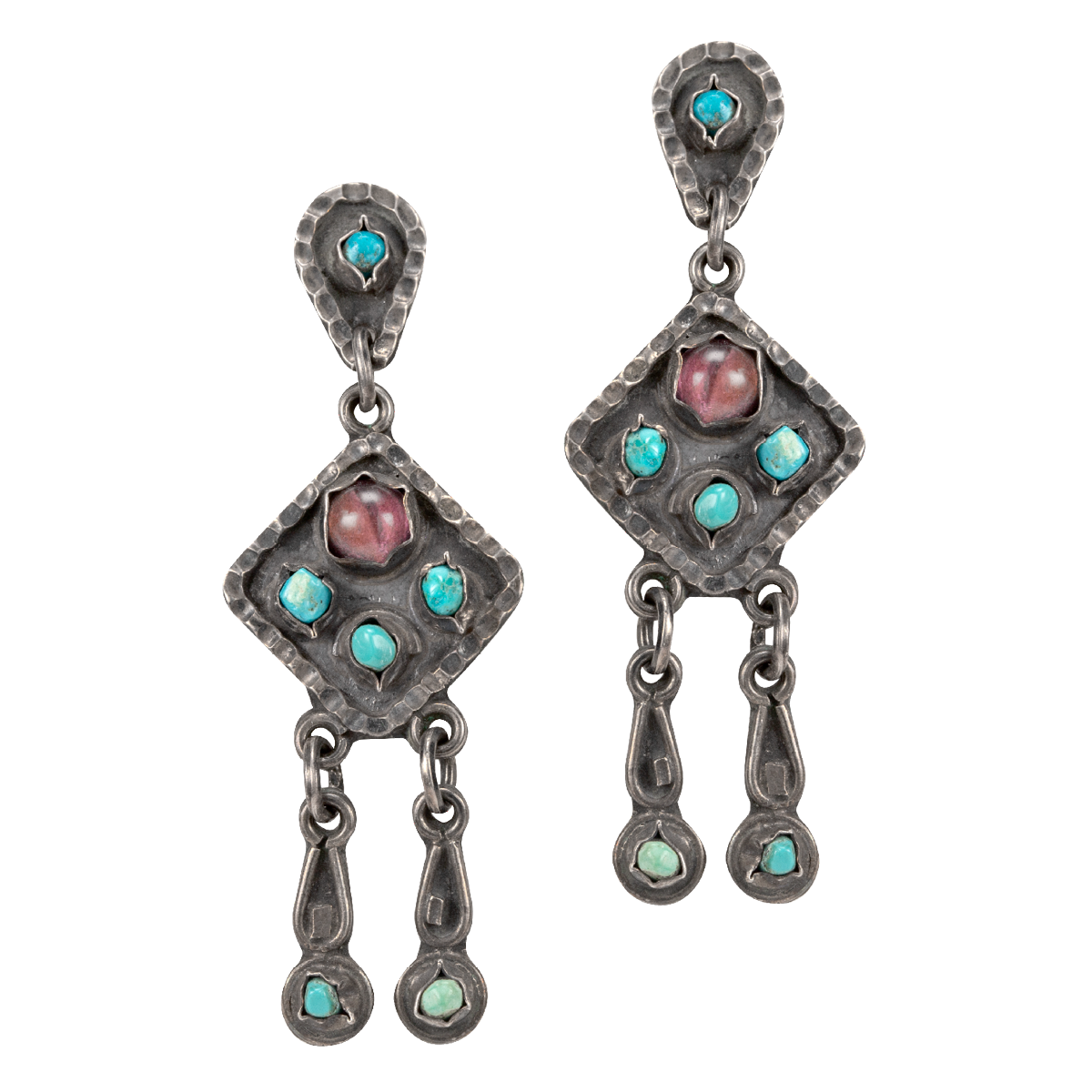 Amethyst and Turquoise Mexican Earring. 2-3/4″ long.