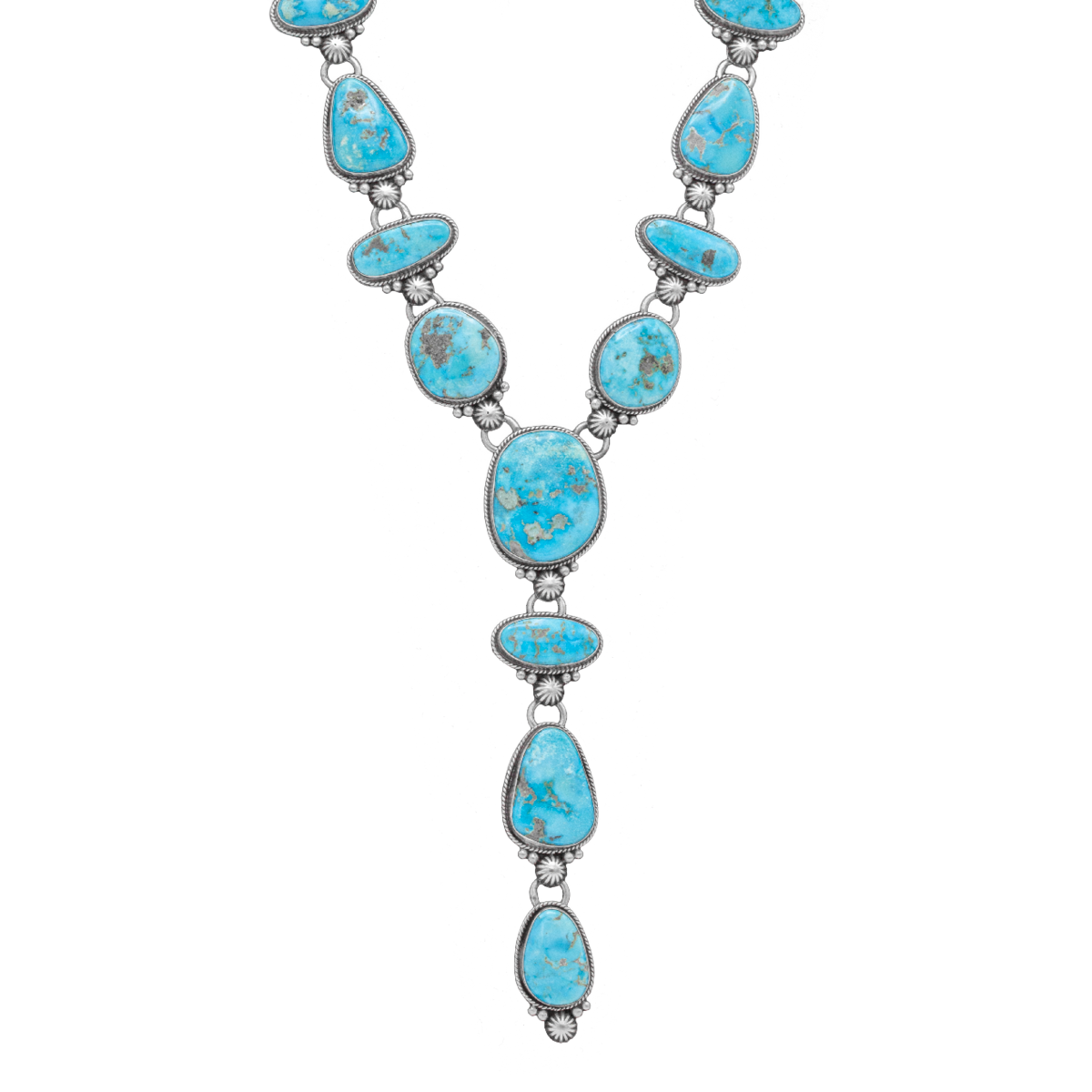 18 Stone Morenci Turquoise Necklace. 20″ long. Comes with matched out earrings.