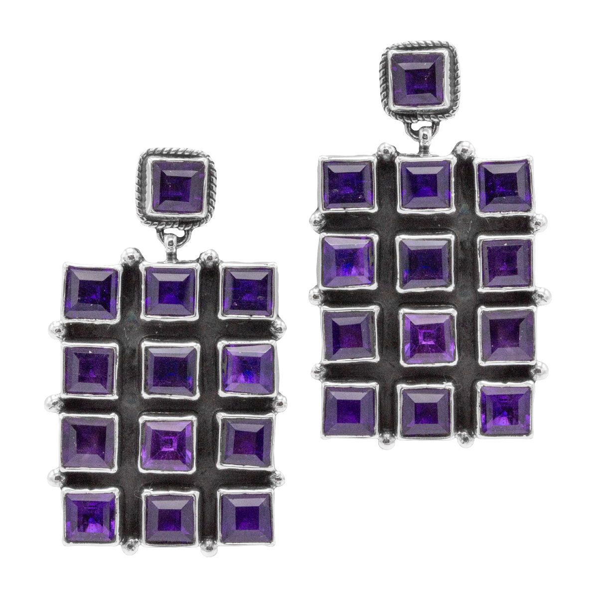 Multi-stone Amethyst Earrings; 1-3/4″ long.