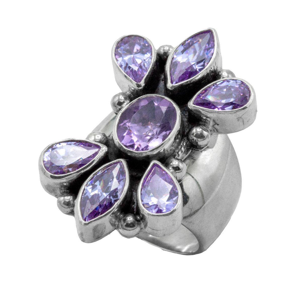 Multi-stone Amethyst Ring; size 7-1/2, slightly adjustable.