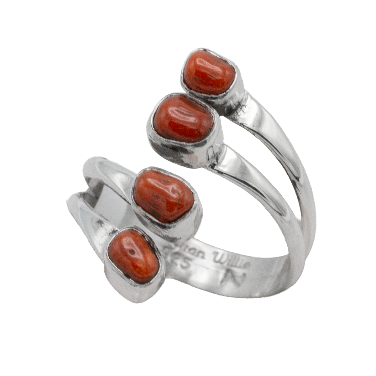 Multi-stone Coral Wrap Ring; size 8-1/2, slightly adjustable.