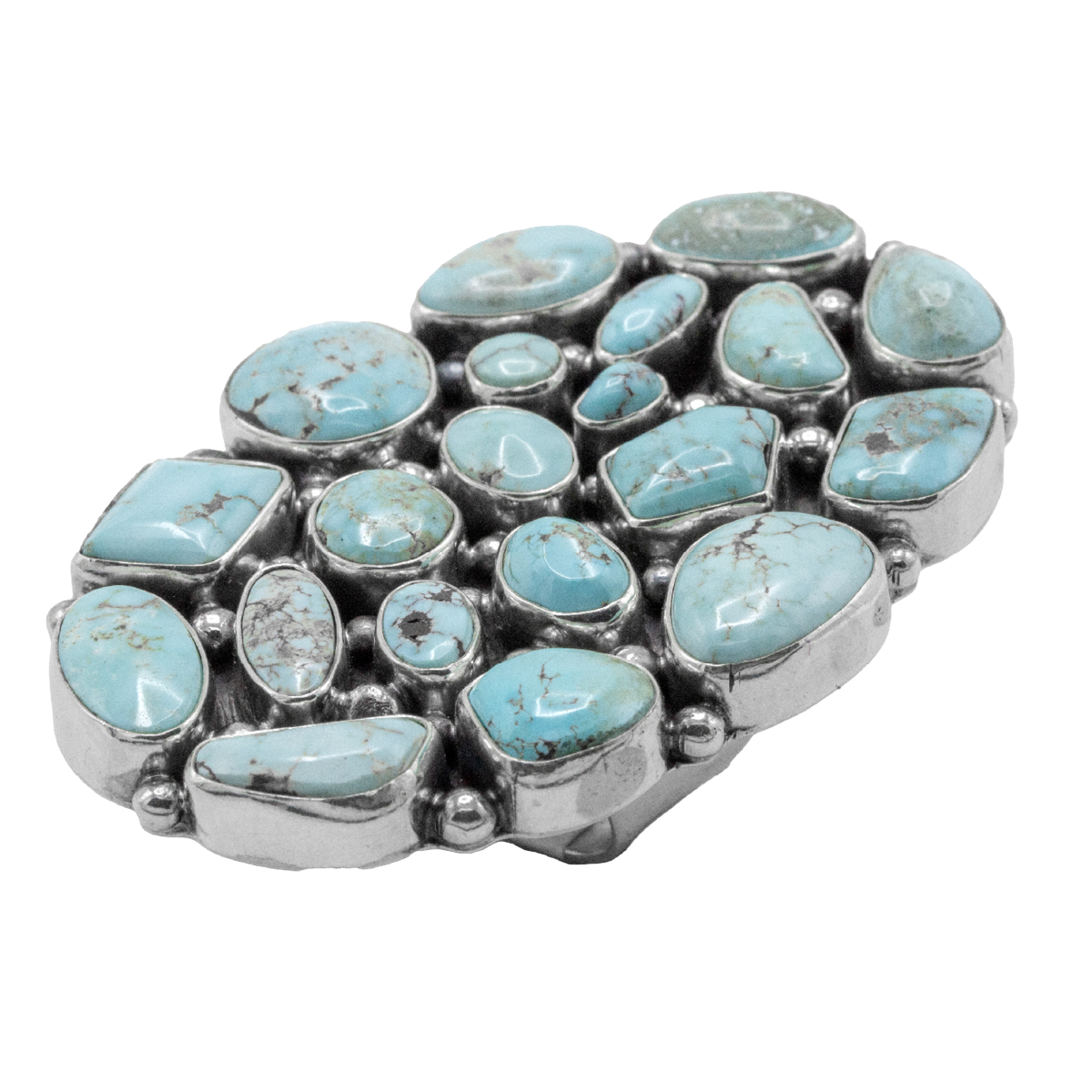 Multi-stone Dry Creek Turquoise Ring; size 8-1/2. Ring is 2-1/2 long by 1-3/4″ in width.