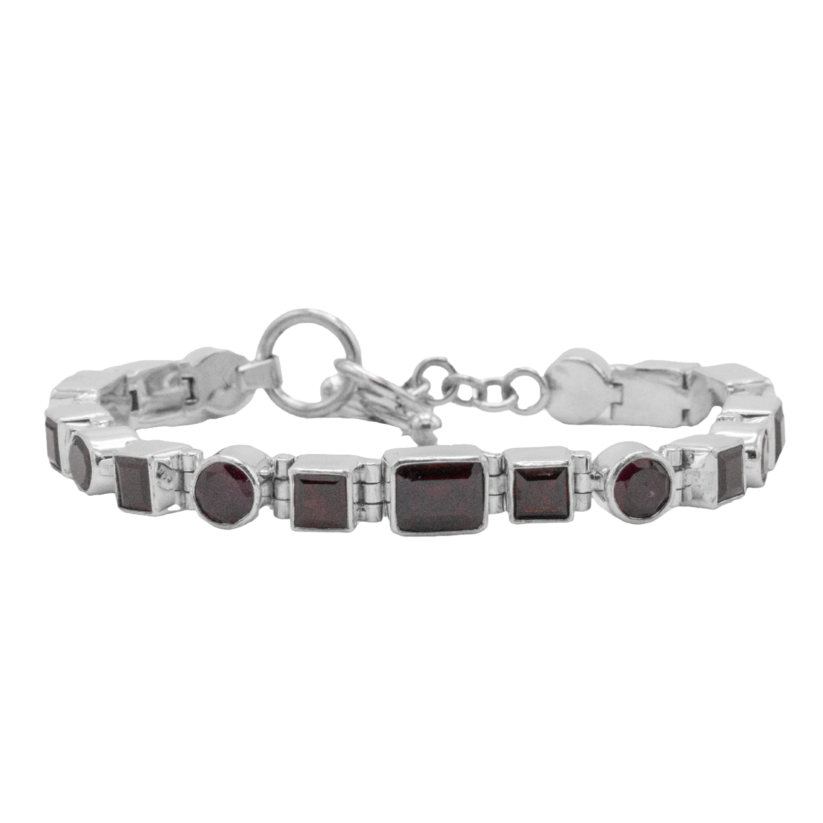 Multi-stone Faceted Garnet Link Bracelet; 7″ long.