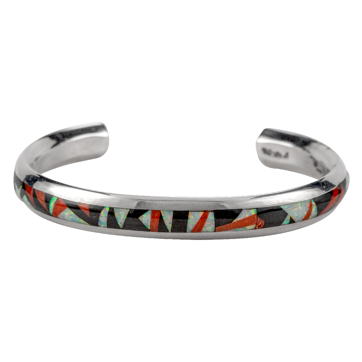 Jet, Coral, and Opal Inlay Cuff Bracelet. 1/4″ wide.