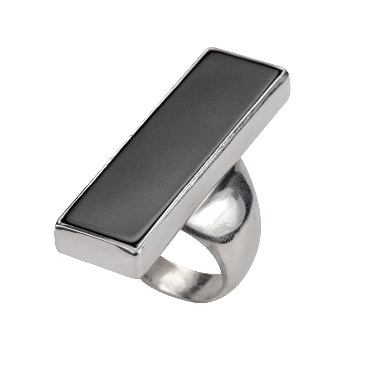 Long Rectangular Onyx Ring. 1-1/2″ long. Size 9 slightly adjustable.