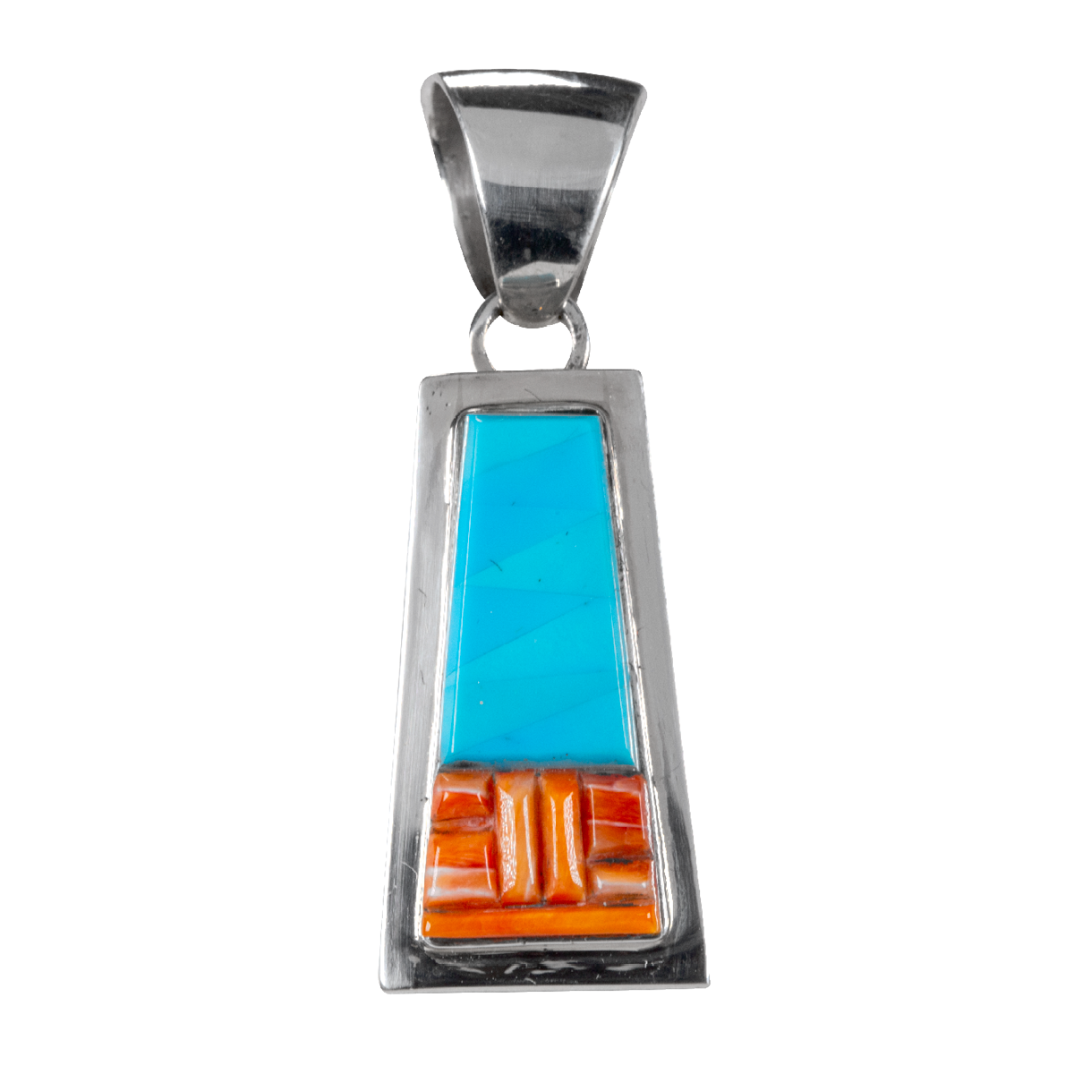 Sleeping Beauty Turquoise and Orange Spiney Oyster Shell Pendant. 1-1/2″ long.