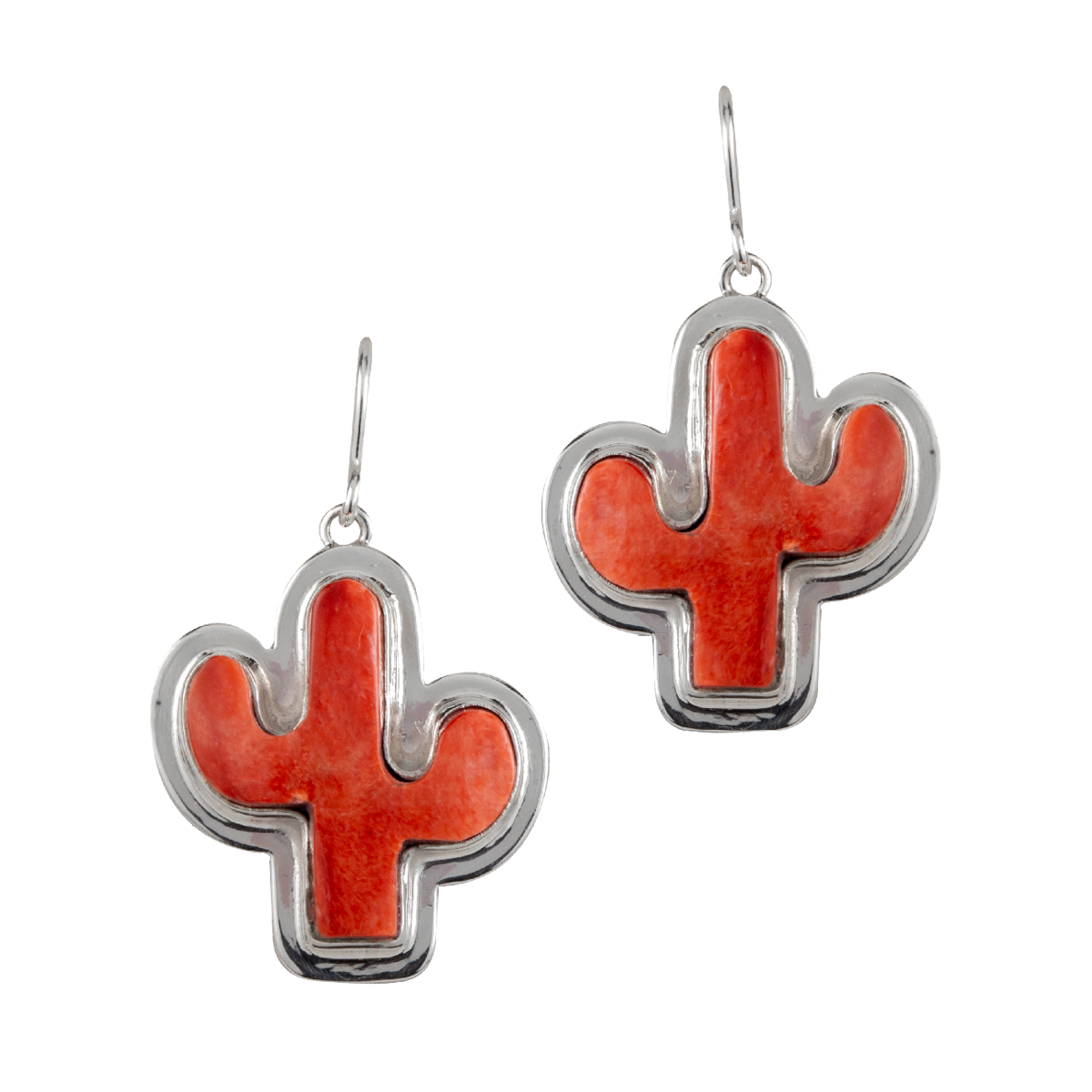 Orange Spiney Oyster Shell Cactus Earring. 1-1/2″ long.