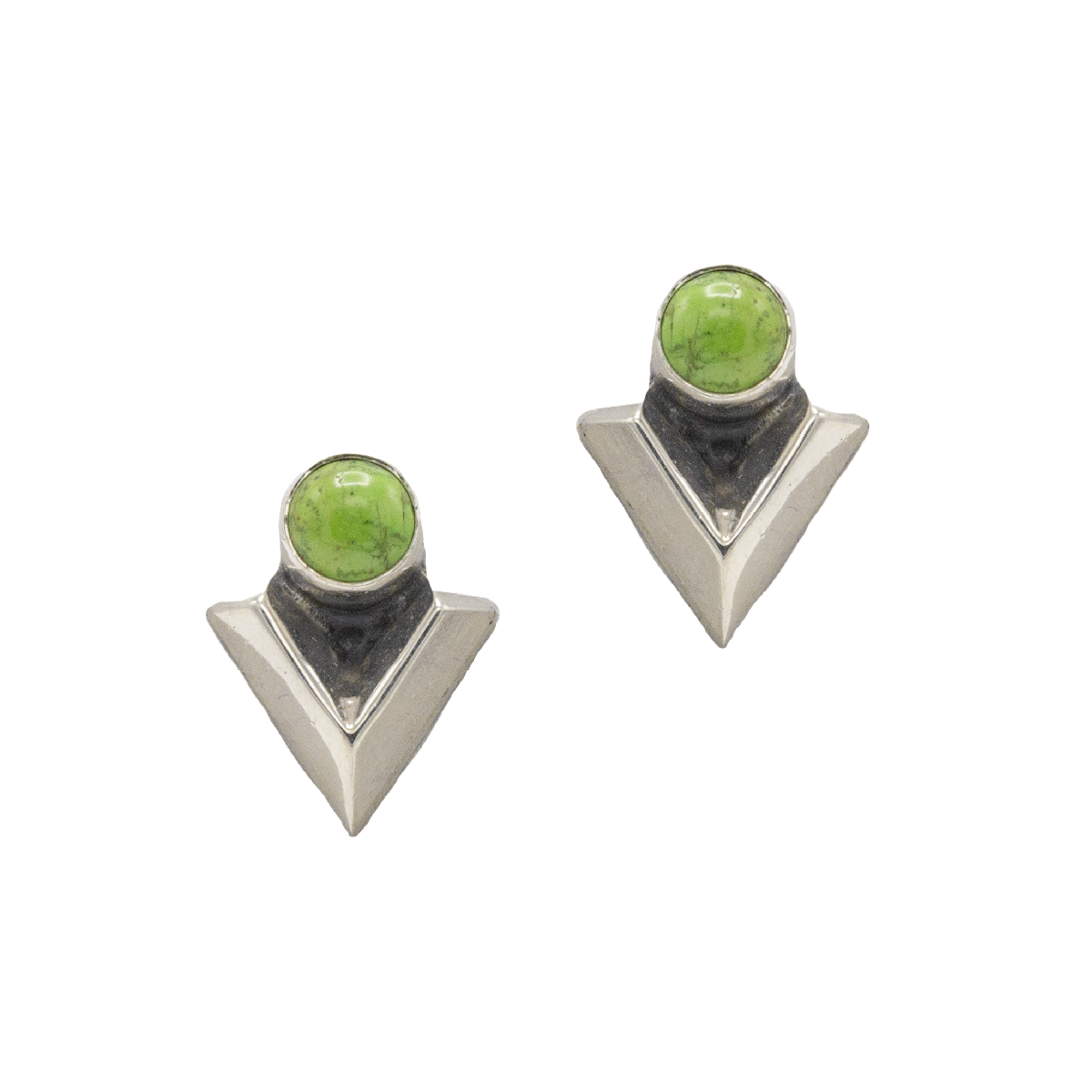 Sterling Silver and Gaspeite Earrings; 1/2″ long.