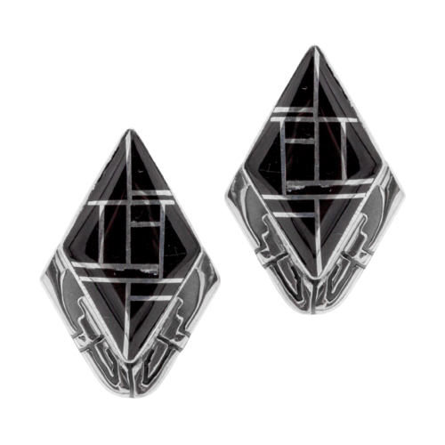 Sterling Silver and Inlay Jet Earrings; 1″ long.
