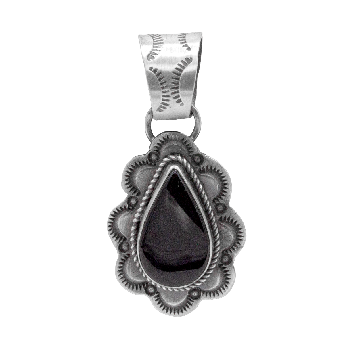 Sterling Silver and Onyx Pendant; total length 2″ long.