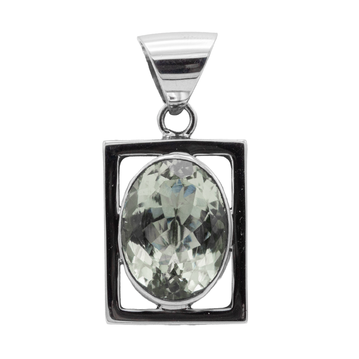Sterling Silver Pendant with Green Amethyst; 1-1/4″ long.