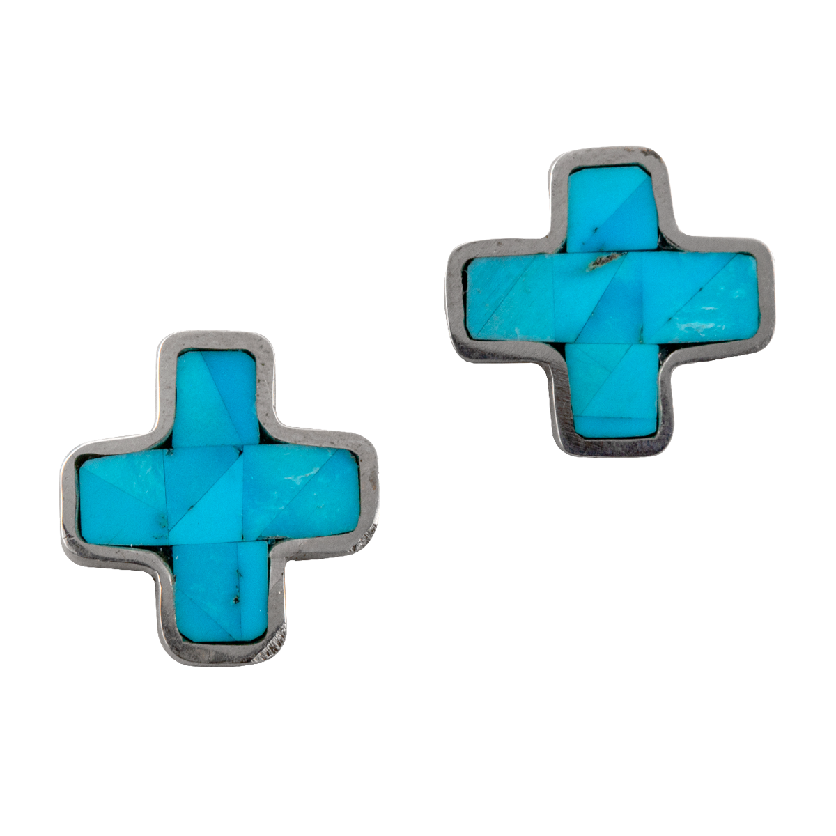 Sleeping Beauty Turquoise Cross Earring. 1/2″ across.