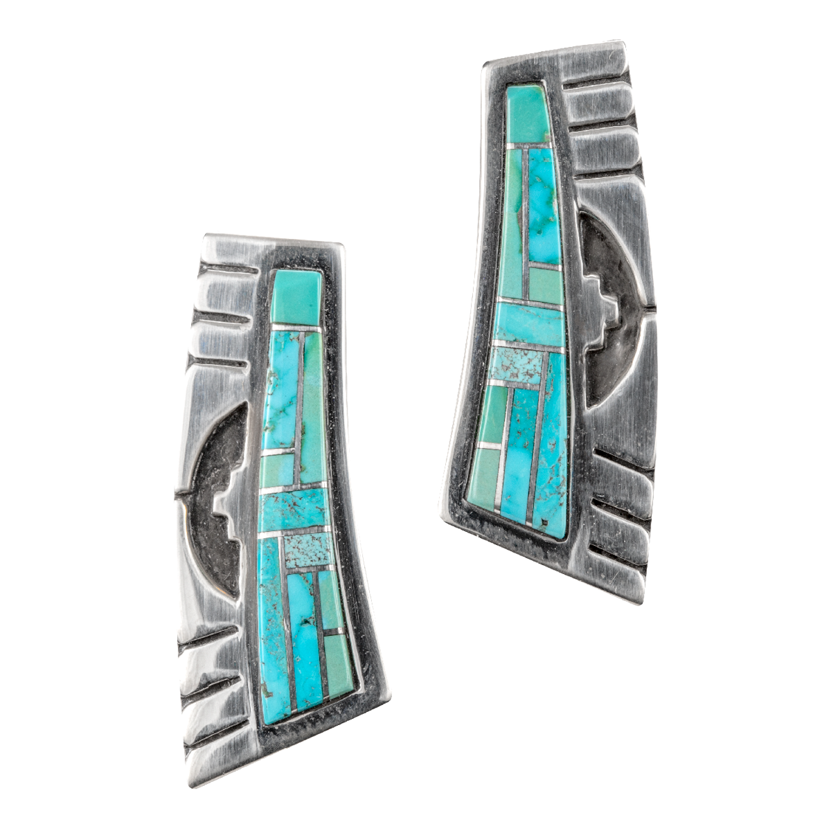 Sleeping Beauty and Kingman Turquoise Inlay Earrings. 1-1/2″ long.