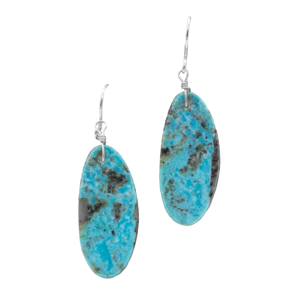 Stabilized Turquoise Slab Earrings; 2″ long.