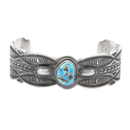 Tyrone Turquoise Inlay Cuff. 3/4″ at widest point.