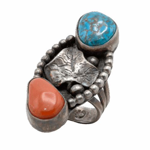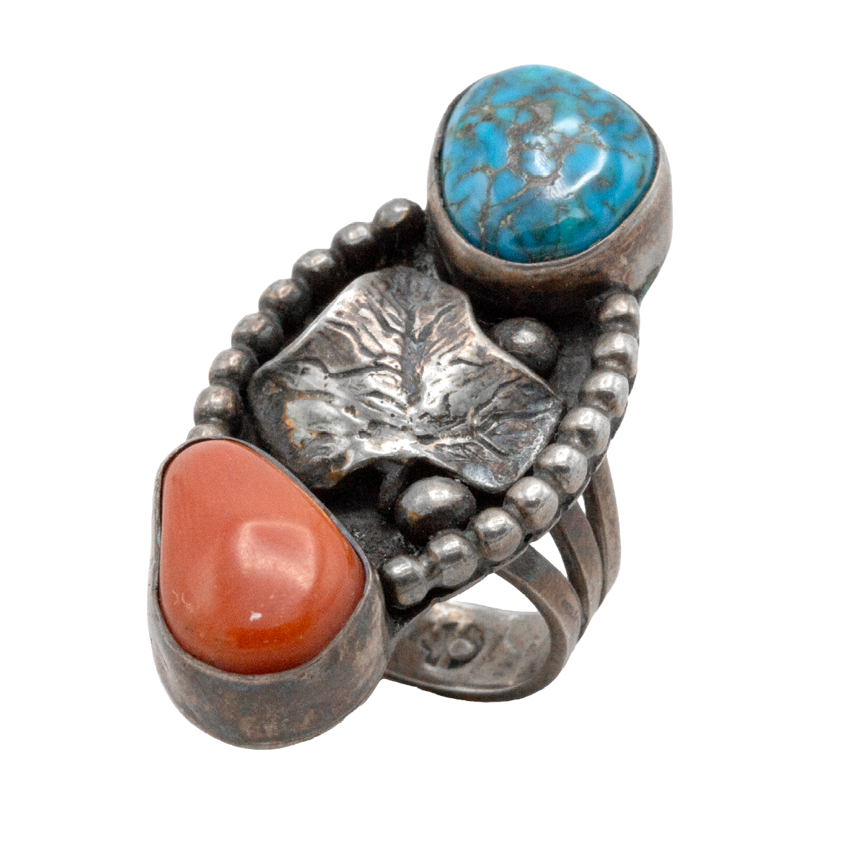 Vintage Turquoise and Coral Ring GZ NW 5704