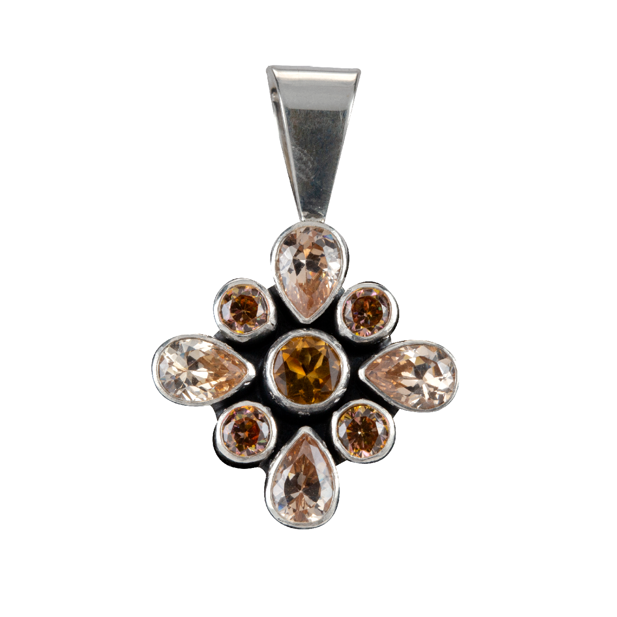 Champagne CZ and Citrine Cluster Pendant. 1″ across.